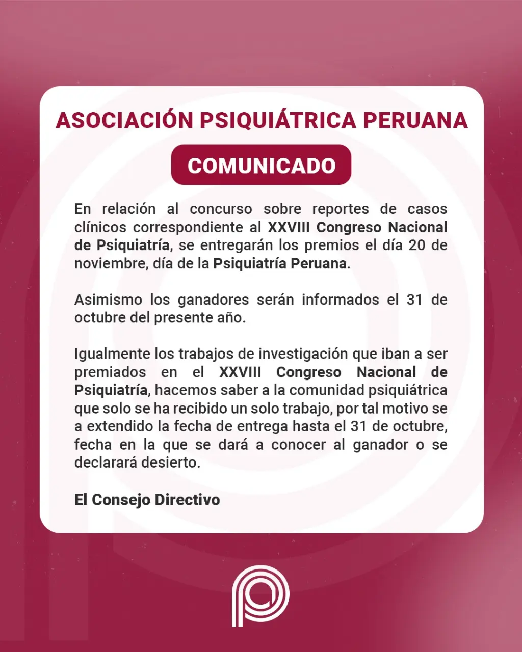 Concurso nacional de reportes de caso clínico para residentes de psiquiatría en el Perú 2025